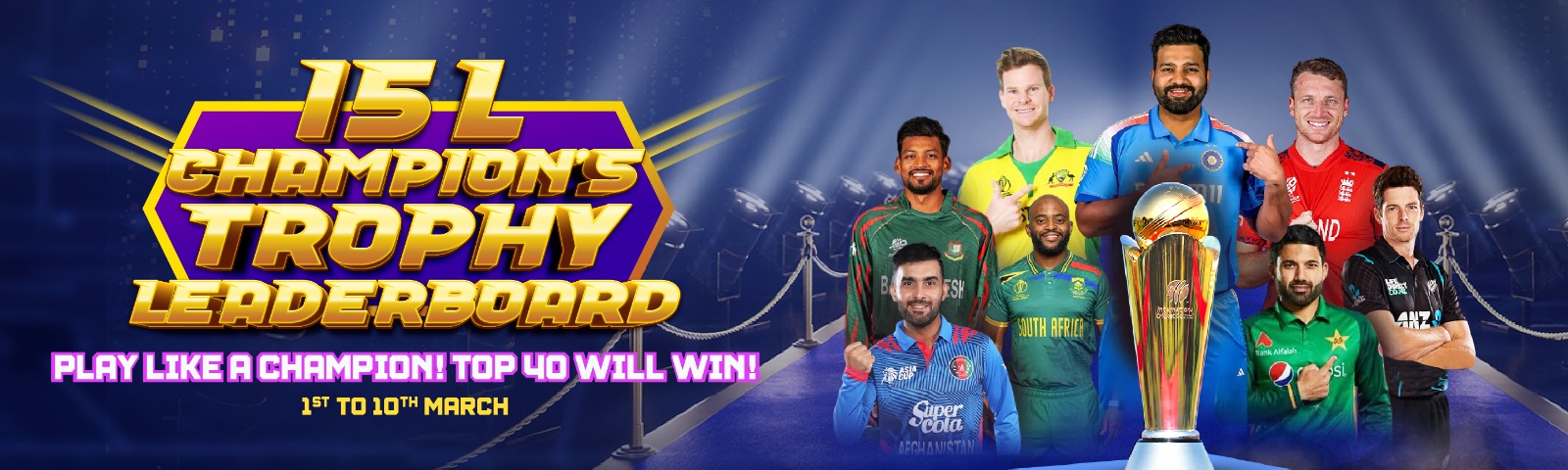 Play like a true champion and compete for your share of the ₹15 Lakh prize pool. The top 40 players in this exciting Sports leaderboard will win big from March 1st to 10th. Bigger bets, bigger wins! Keep playing to climb the leaderboard and secure your spot among the champions. Don't miss your chance to rise to the top.