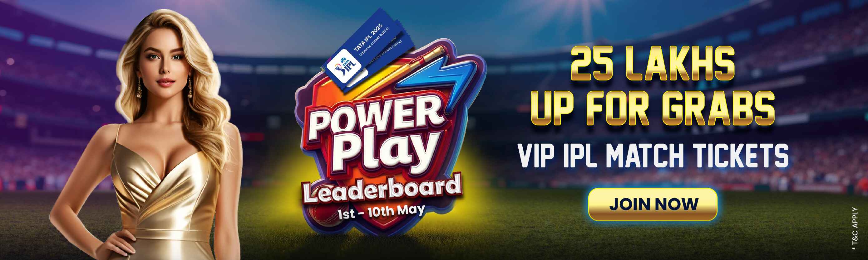 Kick off IPL in true powerplay style with the Powerplay Prize Leaderboard from 1st - 10th May! Play your favourite games and rise through the ranks to win from a massive ₹25 Lakh prize pool. The Top 10 players will share cash rewards, while the Top 3 also get VIP IPL Match Tickets for qualifier games or finals! Don’t miss your shot at big wins and stadium thrills.