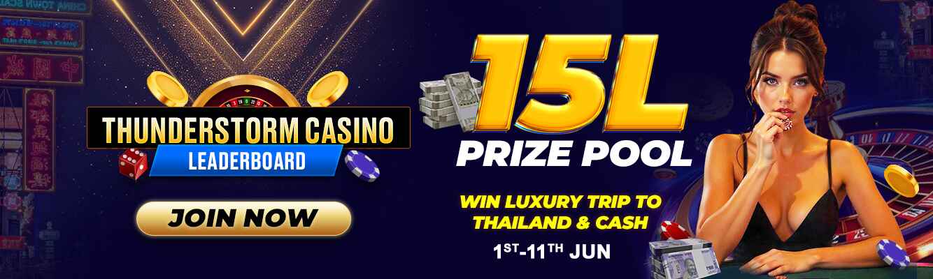 Brace yourself for the ultimate casino challenge from 1st to 11th June, on JeetKhel! With a massive ₹15 Lakh Prize Pool, the Thunderstorm Casino Leaderboard offers you a chance to win a Luxury Thailand Trip and exciting Cash Rewards. Be among the Top 40 Winners to claim your share of glory and riches. Whether you're a high roller or a lucky streaker, this is your moment to shine!